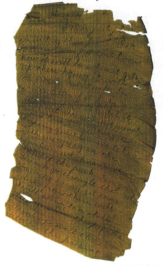 I take great pleasure in writing ------ (these? this from Cuba????) I don't know how it will be when it gets up there I guess it will be frozen but it will be a nice letter if it keeps you can press it till it dries out.