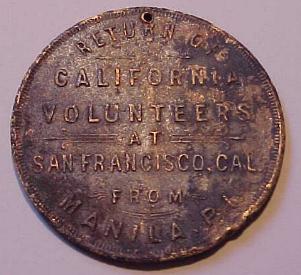 laurel wreaths in both hands. The reverse reads "RETURN OF CALIFORNIA VOLUNTEERS