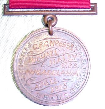 In 1884 the Navy Department authorized a new design for the Good Conduct Medal. The new design consisted of a circular Good Conduct medal to be suspended from a maroon ribbon. The design for the new medal retained the pendant designed in 1880 by Commodore Schley who was head of the Navy's Equipment and Recruiting Bureau.