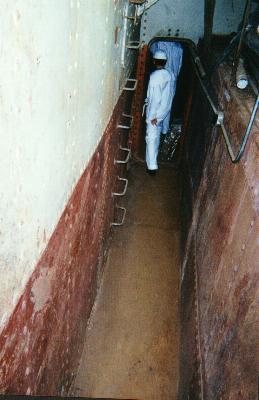 The cofferdam can most plainly be seen when traversing the wing passage, which is a long passage that passes between the outer hull and the coal bunkers, etc. just at the waterline.