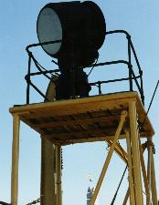 A search light on a raised platform remains in place on both the port and starboard sides on the vessel. Searchlights had become crucial parts of a vessel's defenses by the time of the Spanish American War. The main task of these lights were to help in defending against a night attack by a torpedo boat.