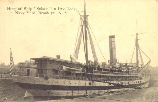 After being resupplied and outfitted with an additional ice machine in New York, she again steamed south to the war zone. She picked up the navy sick from the waters aroound Cuba and those injured and wounded brought by the GLOUCESTER from Puerto Rico. After transporting these men to Boston, she underwent some repairs and then went back to Cuban waters. By now it was September and the fighting was over, but the need for SOLACE was greater than ever. With the outbreak of yellow fever and malaria among the troops in Cuba, the situation was quite grave. SOLACE was under orders bring home as many of the sick as she could accommodate.