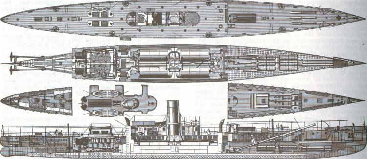 was laid out below decks. Her unique fixed gun arrangement can be clearly