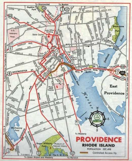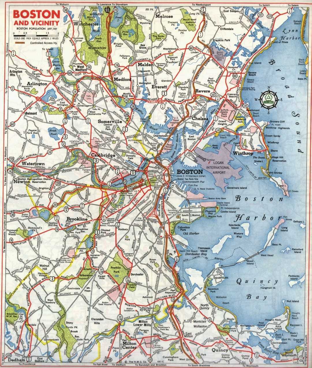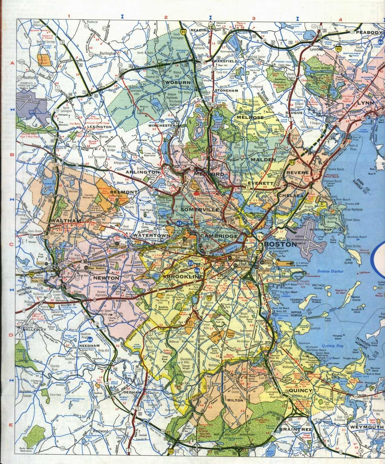 Boston inset from Rand McNally 1969 CT/MA/RI map
