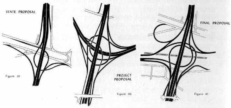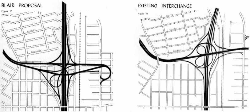 Most of the scans here are from the book Interstate Highway System and Urban Structure by Hammerschlag (1976). The ones of Fox Point Blvd are from The Steadyflow Traffic System by Malcher (1935).