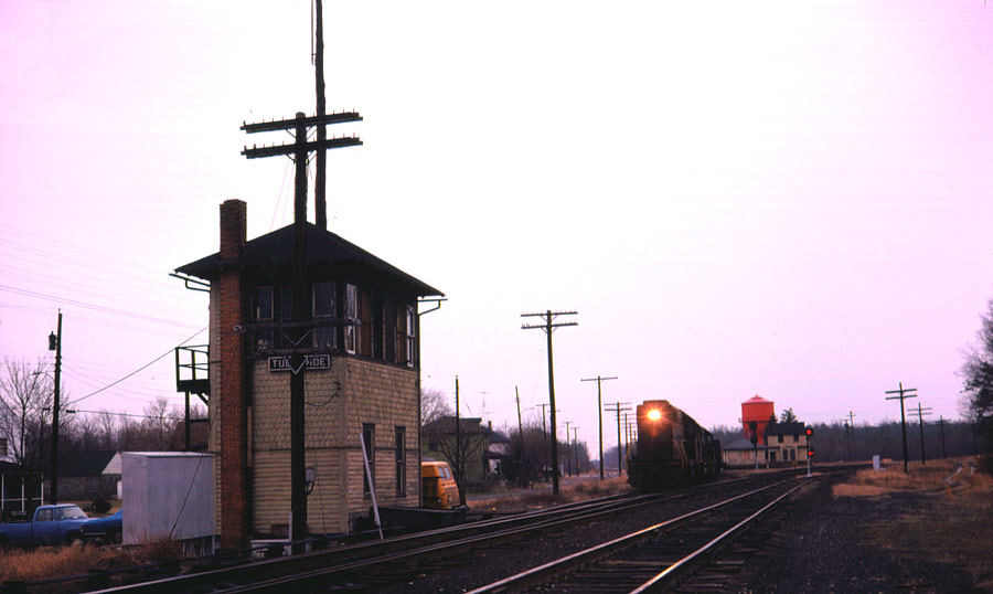 The old yard tower became the railroads office. Some old PRR boxcars sit