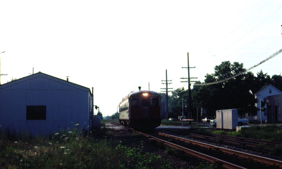 A single RDC car waits on the Ocean City branch for connecting passengers.
