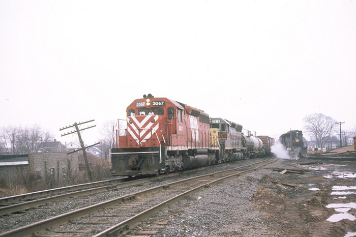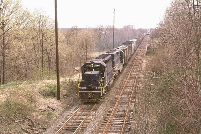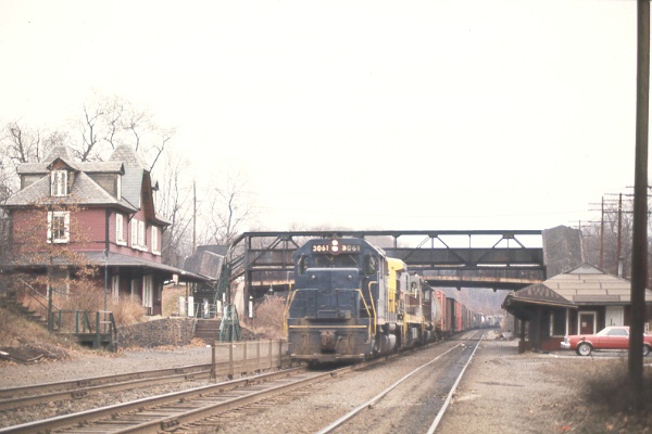 3068 leads two other SD40's on an eastbound out of Allentown yard.