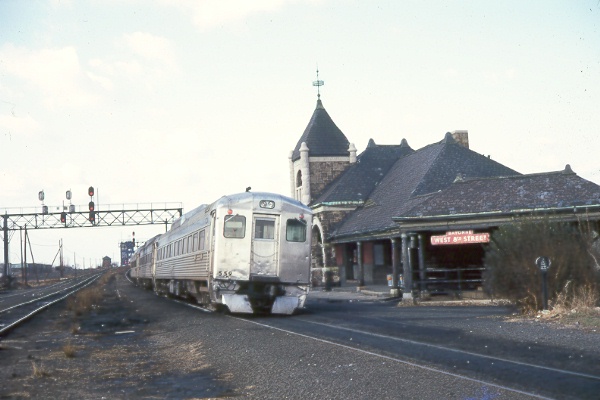 The Bayonne scoot at West 8th Street station. The Jersey Central maintained a local shuttle from Cranford to Bayonne after the 1967 abandonment of the Jersey City terminal.