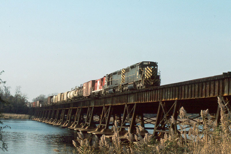 After passing through the Naval Weapons Station, Earle, the line passed through Farmingdale where a former PRR branch once crossed at grade. There was an interchange track there and today it serves as a lead to a local lumber yard.