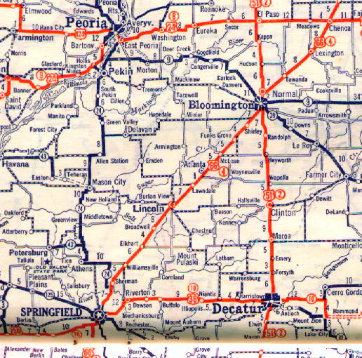 was re-routed around downtown Dwight, IL; Pontiac, IL;