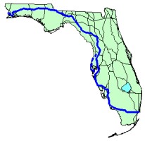 US 41 from Miami to Fort Myers, SR 80 from Fort Myers to East Fort Myers; SR 31 from East Fort Myers to Tucker's Corner; Tucker's Grade from Tucker's Corner to Tropical Gulf Acres; US 41 from Tropical Gulf Acres to Williston; Alt US 27 from Willston to Bronson, FL 339 from Broson to Trenton, FL 26 from Trenton to Old Town, US 19 from Old Town to Capps, US 27 from Capps to Havana; FL 12 from Havana to Quincy; US 90 from Quincy to the Alabama state line west of Beulah