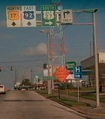 | Route: Truck US 17 / 92 in this area used to avoid Kissimmee's popular downtown area. US 17 / 92 was moved to this route in 1999. US 192 is also known as Vine St and CR 525 is also Bermuda Ave. | ||