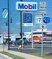 two-lane rural thruway. (2000) There is a new alignment for US 17 / 92 through Kissimmee, it follows the former "Truck Route", partially along US 192. The old route is now just city streets. (2006) Jacksonville decided to change US 17's routing through town, now it follows most of what was "Alt US 17" on state maps, up onto the Interstate. The old route was returned to the city. |