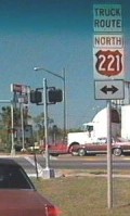 | Route: Much of the route is marked simply "Truck Route". North of Perry, Truck US 221 turns west on Wright Road (CR 359A) for 1.3 miles, then follows Byron Butler Pkwy into Perry. This route avoids the downtown area. | ||