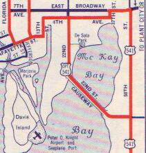 | Drive: Part of this route is now US 41, down Bayshore, the part down Broadway is a county highway. | ||