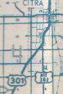 | Route: US 301 winds though Central Florida from the northeast to the Gulf coast. It is a four lane route from the state line to Callahan, a two lane road from Callahan to Baldwin (part of Jacksonville). From I-10 at Baldwin, it is a major four lane route, passing through the infamous speedtrap of Lawtey, Starke (Home of Ol' Sparky, Florida's Electric Chair), Waldo (another more infamous speedtrap), Hawthorne, and Ocala. The four lane section ends at Summerfield, south of Belleview. Two lanes carry the route south to its next fourlaned section from Trilby to Zephyrhills, passing through Dade City. US 301 is two lanes again till it crosses I-4 east of Tampa. From there to Riverview it is fourlaned again briefly until its last stretch of two lane road. From west of Parrish to the end of the route in Sarasota, US 301 is a four lane road with mostly local traffic. This section also services Palmetto and Bradenton with US 41. | ||