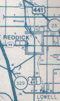 | Drive: July 2001: A rural area, some horse country, and a state prison in the Lowell area. Don't pick up any hitchhikers. It is all two-lane driving. Signage for CR 25A was in need of replacing. As indicated on the map snippet below, the Reddick community was bypassed by a newer route, the old road leads through downtown like it did when this was US 41. A couple businesses featured the address of "Old 441" in the Kendrick area, a mobile home park and an automobile repair shop. It is hard to miss them unless you are looking at the dirt bike track. | ||