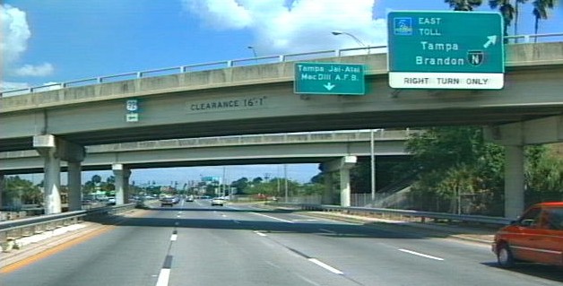 Bypass I-275I-275 used to have a bypass leading from St. Petersburg to Tampa. It was signed with N and S interstate style signs. It was meant to divert traffci at times when the old, narrow Howard Frankland Bridge was not moving traffic. In modern times, the old narrow four lane "Frankenstien" is now striped for three lanes and only carries eastbound traffic. The N and S signage was removed in 1993 and 1994. The path of the "N" bypass route was up Florida 694 in St. Petersburg, across the bay on Gandy Blvd (US 92), northeasterly along the Crosstown Expressway to the Willow St Exit, north on Willow St, west on Cleveland Ave, then north on Howard Ave back to I-275 in Tampa. The path of the "S" bypass route was south on Armenia Ave, then east on Platt Street, north on Willow St, southwesterly along the Crosstown Expressway to Gandy Blvd (US 92 and Florida 694) back to I-275.