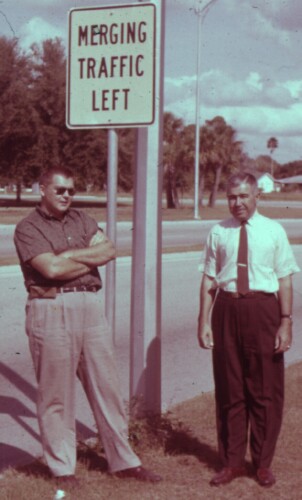 Same location, same date, FDOT folks with a "Merging Traffic Left" sign.