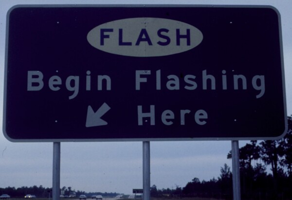 Early motorist aid system signs, along I-4 between Lakeland and Orlando in 1972.You flashed your brights at special posts along the highway and a light would flash back at the FHP office. Now we have call boxes.