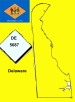 From Patrick Sheridan: This shield has it all. It has: 1. the state outline 2. the state name 3. the state flag 4. and a diamond. These all represent Delaware in one way or another.