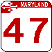 From David Kendrick: Maryland's present signage is just ugly. But the basic shape is about as recognizable as Cal Ripken, so why do away with it? Add the state flag and a splash of color, apply the typeface Maryland uses for historic and state welcome signage, and soften the edges a little. Same functional, basic design, but a newer, spiffier look. For three-digit route numbers, just narrow the characters. The font stays remarkably readable even when compressed. And since Maryland's running out of three-digit route numbers, the design even works with four-digit numbers.