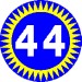 RVD: This state has too many mottos and too strong a desire to re-image itself to suit me. Is this the Sunshine State? No, that's Florida. The Coyote State? Sounds more like Arizona, even if they are the State Animal. In the 1990's, they came up with "The Mount Rushmore State." Well, okay. But four profiles on a route marker got busy. The next targets: The State Seal and Flag. Now this we can work with. I stole the sunburst from them and the blue background, and placed them on a circle cut-out blank.