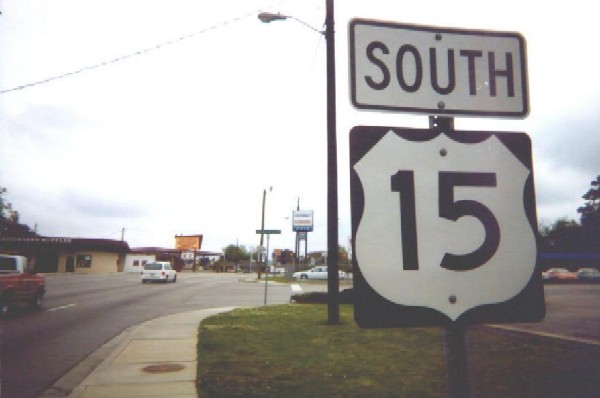 The last US 15 sign headed southbound, there was no "END US 15" sign. US 15 ends about a block and a half south of here. (4/99)