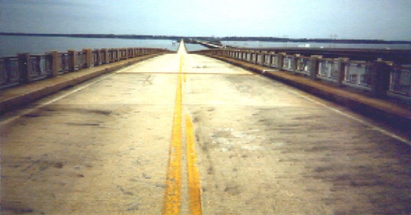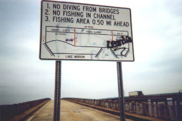 The high point of the bridge, looking north over Lake Marion. (4/99)