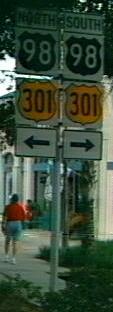 | In Dade City: On 7th Street. The old alignment of US 98 / US 301 though downtown Dade City. The last time I drove through there, 11-25-1998, there were no reassurance signs, only the signs directing traffic onto the Business Route from US 98 / US 301. | ||