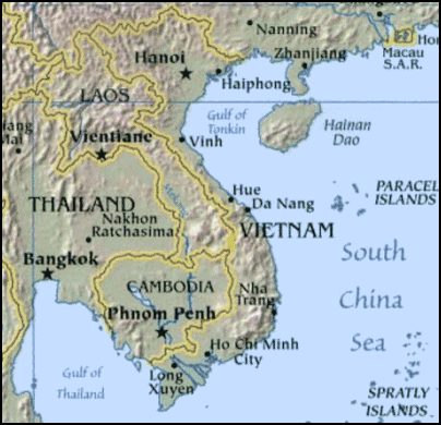 In early 1965, the United States began air raids on North Vietnam and on Communist-controlled areas in the South; by 1966 there were 190,000 U.S. troops in South Vietnam. North Vietnam, meanwhile, was receiving armaments and technical assistance from the Soviet Union and other Communist countries. Despite massive U.S. military aid, heavy bombing, the growing U.S. troop commitment (which reached nearly 550,000 in 1969), and some political stability in South Vietnam after the election (1967) of Nguyen Van Thieu as president, the United States and South Vietnam were unable to defeat the Viet Cong and North Vietnamese forces. Optimistic U.S. military reports were discredited in Feb., 1968, by the costly and devastating Tet offensive of the North Vietnamese army and the Viet Cong, involving attacks on more than 100 towns and cities and a month-long battle for Hue in South Vietnam. Hue City (1990 est. pop. 211,000), former capital of the historic region of Annam, Vietnam, in a rich farming area on the Hue River near the South China Sea. Probably founded in the 3d cent. a.d. , Hue was occupied in turn by the Chams and the Annamese. After the 16th cent. it was the seat of a dynasty that extended its power over S Annam, modern Cochin China, and parts of Cambodia and Laos. The first king of Vietnam, Nguyen Anh, was crowned there in 1802, and shortly thereafter Hue became the capital of the new kingdom, emerging as an artistic and literary center. The French occupied the city in 1883. During World War II the Japanese mined iron ore in the area. In the Vietnam War, Hue was the scene of the longest and heaviest fighting of the Tet offensive (Jan.-Feb., 1968); some 4,000 civilians were killed and most of the city, including the palaces and tombs of the former Annamese kings, was destroyed. Much of the city has been rebuilt. Hue has an important airport and is the seat of the Univ. of Hue. Duong Van Minh 1916-, Vietnamese army officer and political leader. A military advisor (1962-63) to President Diem, he helped to overthrow Diem in 1963. He was head of government (1963-64), after which he went into exile. Minh returned in 1968, serving as an opposition leader against President Thieu. A presidential candidate in 1971, Minh withdrew, charging election rigging. He returned briefly as President in 1975, in an unsuccessful conciliation effort but was placed in detention after the Communist takeover. Nguyen Van Thieu 1923, president of the former Republic of South Vietnam (196775). After World War II, he joined the Viet Minh, but then left it to join the South Vietnamese National Army (ARVN). He rose rapidly, becoming a division commander. In 1963, he helped lead the coup d'tat overthrowing President Diem. Together with Nguyen Cao Ky, Thieu was a leading force in a succession of South Vietnamese governments from 1963 to 1967. He was elected president in 1967 and retained office in a controversial election in 1971. Thieu was reluctant to sign the Paris Agreement (1973) until promised U.S. military aid. When North Vietnam launched an offensive in 1975, no aid was forthcoming, and Thieu abandoned the northern half of the country, leading to a rout. He left for exile in Taiwan and then Great Britain days before the Communist victory. Tonkin Gulf resolution In U.S. history, Congressional resolution passed in 1964 that authorized military action in Southeast Asia. On August 4, 1964, North Vietnamese torpedo boats in the Gulf of Tonkin were alleged to have attacked without provocation U.S. destroyers that were reporting intelligence information to South Vietnam. President Lyndon B. Johnson and his advisers decided upon immediate air attacks on North Vietnam in retaliation; he also asked Congress for a mandate for future military action. On August 7, Congress passed a resolution drafted by the administration authorizing all necessary measures to repel attacks against U.S. forces and all steps necessary for the defense of U.S. allies in Southeast Asia. Although there was disagreement in Congress over the precise meaning of the Tonkin Gulf resolution, Presidents Johnson and Richard M. Nixon used it to justify later military action in Southeast Asia. The measure was repealed by Congress in 1970. U.S. Withdrawal