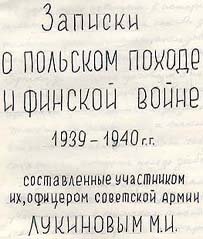 ![]() Notes on the Polish Campaign and the War with Finland in 1939-1940 Written by their participant, a Soviet Army officer, M. I. Lukinov |