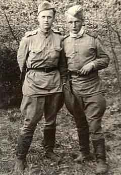 ![]() Evgenii Monyushko (on the left) and Vasilyi Kolechko. Czechoslovakia, 1945 |