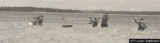 The battery commander assigned our duties and I became a range finder. As it turns out, stereoscopic perception, that is the ability to differentiate distances to objects and determine their relative distance, is particularly subjective. The test was extremely simple: the commander pointed at a tree and a pole, which were approximately 800 meters away from us, and asked which one was farther. Since I had responded correctly I became a range finder. At that time our battery consisted of four guns which were positioned as if at the vertices of a square with sides of 100-150 meters. The command post was located at the center of the square and consisted of waist high foxholes for the spotter, the range finder, and the commander. The battery commander and the guns were connected by wire communications. In reality, during battle, there was no possibility to give voice commands because of the din of salvos, that's why we developed a special system of prearranged signals.