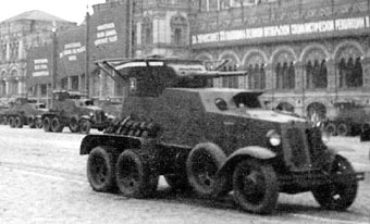 ![]() The radio-equipped BA-6 armored car on the military parade in Moscow. November 7, 1937. (RGAKFD) |