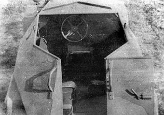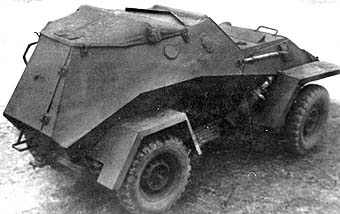 The success of the German APCs forced the Soviet constructors to develop a transport variant of the BA-64. Frankly, BA-64 was the worst base for the such works however, at that time there weren't any alternatives. It was supposed that further vehicle will be without a turret and would be open from the top, but the hull will be remained. On October 22, 1942, the first test were made. At the rear hull the door was made, the roof remained only over the driver. The new 55-litres fuel tank was relocated to the left side and put under the bench. New vehicles supposed to be armed with the 7.62 mm Degtyarev's machine-gun. Further works over the APC have been delayed until the March 1943. At that time the second variant was built. It received the BA-64E designation. The short trials revealed the main disadvantage: it was a quite hard to leave the vehicle. |