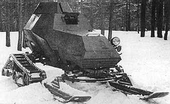 Trying to solve a problem of truck's movement over a snowy terrain in winter 1942 the new truck GAZ-SKh was developed (it was based on the chassis of the GAZ-AA). Instead of common wheels, the truck had the original track unit which has been developed before the Great Patriotic War (Chief-engineer - S.S.Nezhdanovsky). The driving-wheels were replaced with track unit, the front wheels were replaced with pair of a wide skis. Then, the idea to install the BA-64 onto Nezhdanovsky's track unit suggested. From July 1943, the works on this idea started. The very first prototype was finished by January 1944. New vehicle received the BA-64Z designation ("Z" means "zimniy" - winter). The brakes, absorbers, the driving shaft, distribution box and the reserve wheel were removed from the new vehicle. The overall dimensions of the BA-64Z increased: length - 4560 mm, width - 2280 mm, height - 2020 mm. The full weight increased up to 2980 kilos. On January 9, 1944, the first trials begun, but finished unsuccessfully: the BA-64Z stuck. It was dragged out by the GAZ-62 truck. From January 13, the trials resumed, now the BA-64Z towed the field gun. (Unfortunately, the report does not clarify the model, just mentioned "a field gun". The 76-mm ZIS-3 field gun seems to me most likely however). |