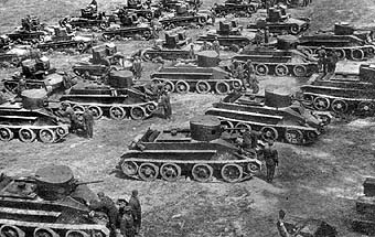 ![]() The BT-2's and T-26's on manoeuvres. (RGAKFD) |