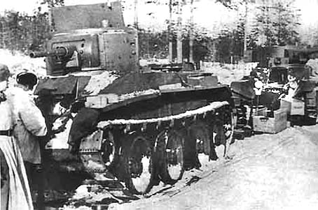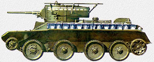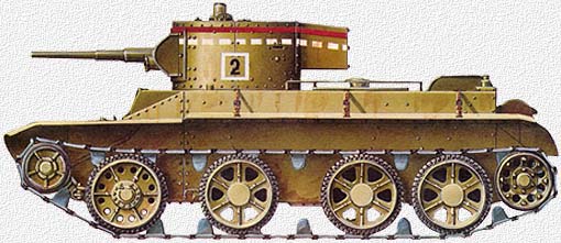 The first usage of BT-5 was in Spain in 1937 where 100 tanks were sent. In May - August 1939 these tanks took part in conflict at Halhin Gol river as a parts of 6th and 11th Tank Brigades, in campaign in Western Ukraine, in Poland, in Winter War, and at the beginning of the Great Patriotic War. There were many machines based on BT-5 chassis: the bridgelayers, the amphibious tanks, the radiocontrolled tanks, the tanks with chemical weapons and so on. |