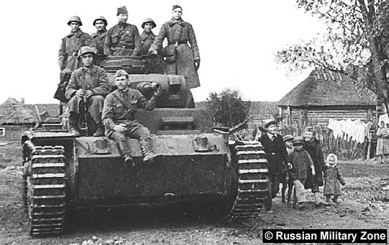 Western Front. Red Army troopers are going to the front. You can see the insignia of the 18th Panzer Div and the regimental insignia of the 18th Panzer Regt on the turret of the tank. |