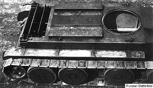 An 800 kg ballast was installed in the tank in place of the absent turret with armament during testing. A number of deficiencies were revealed during the first external inspection, such as an absence of vision ports in the driver's hatch, and also the impossibility of access to the basic power plant assembly and transmission without removing the engine-transmission compartment cover.