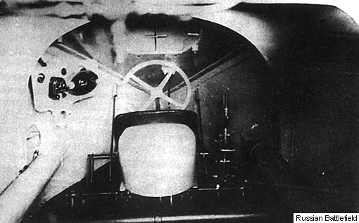 The driver-mechanic steered the tank with the aid of a detachable steering wheel. However, when necessary the tank could be turned in place using steering levers intended for driving the vehicle when it was moving on tracks. During movement on wheels the tracks were stowed on shelves above the wheels and secured to these shelves with leather straps.