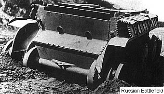 The ability of the tank to overcome natural and man-made obstacles was demonstrated to government representatives on 7 June. But a full demonstration of the tank's capabilities was not possible because of the breaking of the idler wheel mount. The tank freely passed over five rows of barbed wire on its wheels, and then overcame a two-meter ditch.