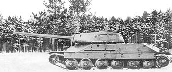 This project began in 1944 in Factory #100 which was headed by J.Y.Kotin. There were several variants of this tank which were distinguished by differing armament, protection, and layout of the turret. The chassis was based on an existing project, but it also contained some original ideas. Only wooden scale-models of this tank were produced. |