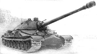 The T-10 was armed with a 122 mm D-25TA gun and a coaxial 12.7 mm DShKM machine-gun (a modernised DShK). In 1955 the first two prototypes were produced: "Object 267 sp.1" with gun stabilization in the vertical plane and "Object 267 sp.2" with a 2-plane gun stabilizer. A year later these features were used in a subsequent version, the T-10A ("Object 730A"). In 1957, another modification, the T-10B ("Object 730B") was accepted into service. This tank was equipped with a 2-plane gun stabilizer, the PUOT-2 "Grom" and a T2S-29-14 sight. Soon, a new 122 mm M-62-T2 (2A17) gun with improved ballistics was developed. This gun was equipped with a 2-plane stabilizer, the 2E12 "Liven" and a T2S-29-14 sight. The new tank ("Object 272") was also equipped with night vision devices. Under the designator T-10M the tank was accepted to service and put into production in 1957. |