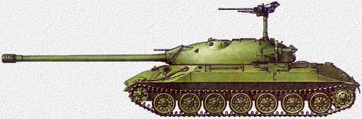 In the summer of 1948, the Kirovskiy factory produced four IS-7 tanks. After they passed the factory trials, they were sent for Government trials. The armor protection of the IS-7 was almost invulnerable: the tank successfully withstood German 128 mm and Soviet 130 mm guns (the best guns of that time). The IS-7 can be considered a masterpiece of Soviet tank development. It was far superior to all other tanks of the time. Having the weight of the "King Tiger" the IS-7 was far superior in protection and armament. The last surviving IS-7 is now displayed at Kubinka. |