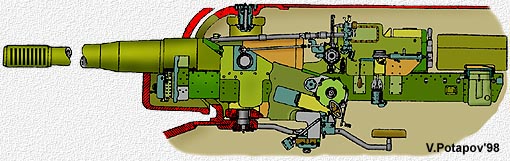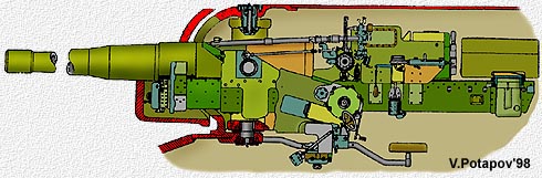 The main problem during mass production of the new assault gun was lack of ML-20S cannons. Soviet artillery plants weren't able to produce them in proper quantity. Although there were plenty of 122 mm A-19 cannons and huge number of 122 mm ammunition. As a result, in summer 1943 the SKB-2 (design bureau in Chelyabinsk) has been ordered to check the chance to mount A-19 cannon instead ML-20S. It was easy because both cannons had the same gun-carriage. At the end 1943, the very first prototype - "Object 242" - has been finished. Then it was tested and accepted for service under the ISU-122 designation. By the end of 1943, the first party of the new ISU-152 and ISU-122 were ready, simultaneously with the first IS-1 heavy tanks. During the war there were several attempts to increase the firepower of the ISU-122. The A-19 cannon was modernised for usage with IS-2 tanks. For this purpose cannon has been equipped with a new semi-automatic block-breech and renamed as D-25S. After modernisation, the practice rate of fire (don't mix with maximum ROF!) increased from 1.5 to 3 shots per minute. |