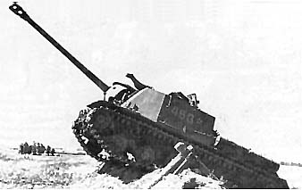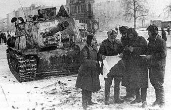 For example, on January 15, 1945, in East Prussia near the Borove town, Germans launched a counter-attack against Soviet infantry that was supported by 390th Guards OTSAP. Soviet infantry retreated behind the regiment's positions. The regiment opened a direct fire, many of the German AFVs were destroyed and most of German soldiers were killed. The counter-attack failed. |