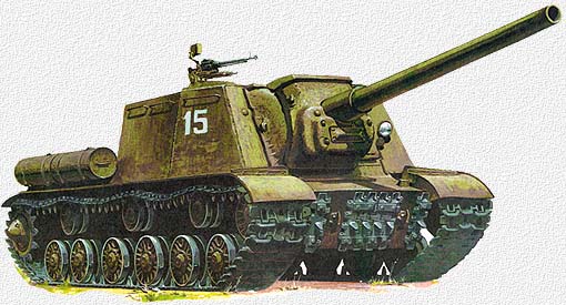 Time to time, ISU's used for artillery missions because they were able for both direct and indirect fire. In particular, during the Sandomir-Silesia offensive operation, the 368th Guards OTSAP of the 1st Ukrainian Front was assigned for artillery mission and for 107 minutes the regiment fired 980 shells. As a result, two German mortar batteries were destroyed as well as other 8 German guns, about one German infantry battalion was wiped out. Interesting to note, that additional rounds were placed at the vehicles, but anyway, ISU's used their "internal" ammunition first. Otherwise, rate of fire become slower because it takes up to 40 minutes to load 20 rounds into the vehicle. |